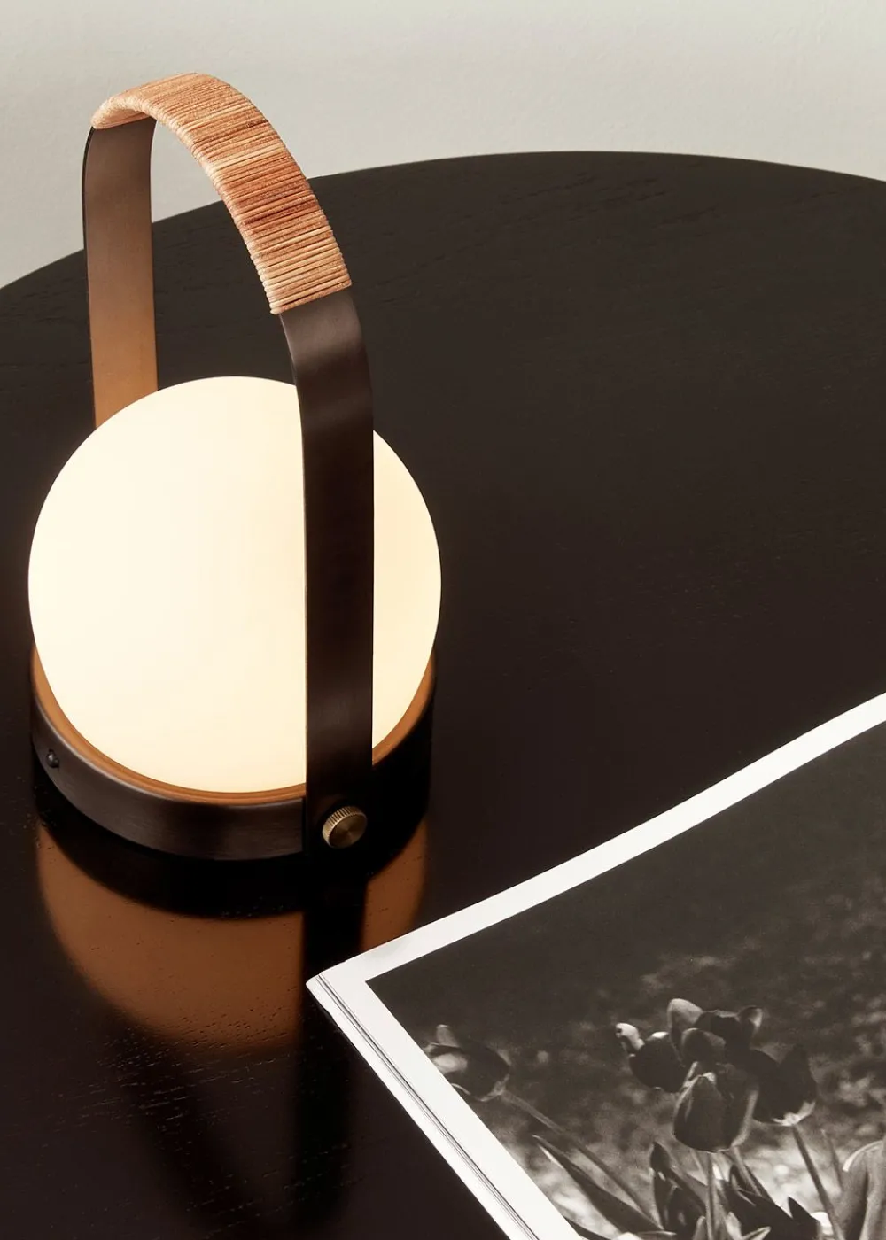 Carrie Tischleuchte, tragbar von . Diese tragbare Tischleuchte gilt als minimalistische Innovation für Freiheit und Vielseitigkeit. Die Tischleuchte besteht aus einem Sockel aus Metall oder Kunststoff und einem Glasschirm, der sich durch seine Vielseitigkeit auszeichnet. Die Lampe ist mit einem magnetischen Stecker an der Unterseite ausgestattet, der ein einfaches Aufladen ermöglicht.