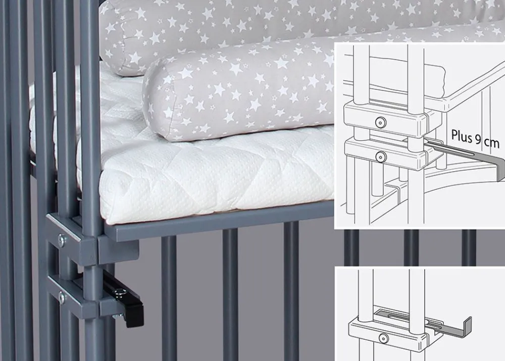 - Empfohlene Höhe des Elternbettes: 13-53,5 cm.