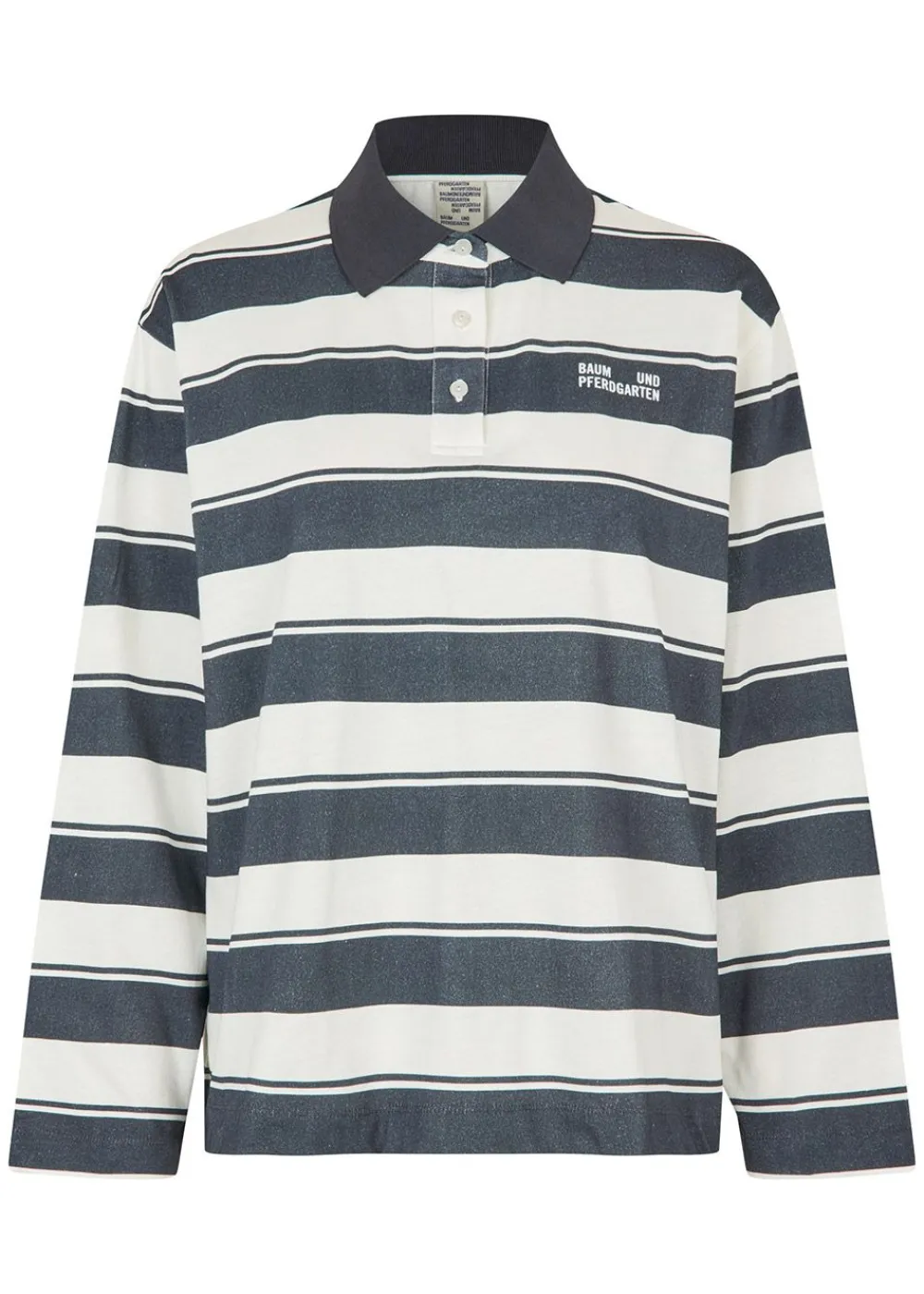 Dieses Poloshirt von ist eine moderne Interpretation des klassischen Rugby-Shirts mit breiten Querstreifen und einem Kontrastkragen für einen sportlichen und stilvollen Look. Das Shirt ist aus weichem und bequemem Material gefertigt, hat eine entspannte Passform und ein dezentes Logo auf der Brust, das für ein elegantes Finish sorgt.