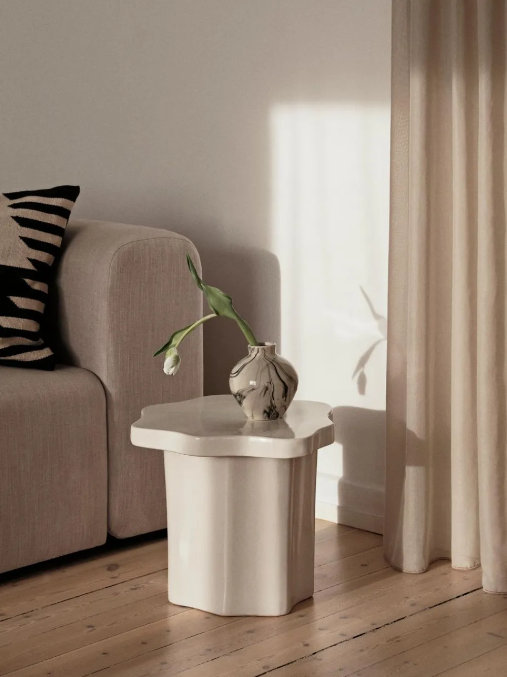 Das vielseitige Design von Sonja Table macht es einfach, ihn in verschiedene Räume zu integrieren. Stellen Sie ihn neben einen Sessel, um eine gemütliche Leseecke zu schaffen, oder verwenden Sie ihn als stilvollen Nachttisch im Schlafzimmer. Kombinieren Sie ihn mit Textilien in neutralen Tönen und natürlichen Materialien, um seine schlichte Schönheit zu unterstreichen.