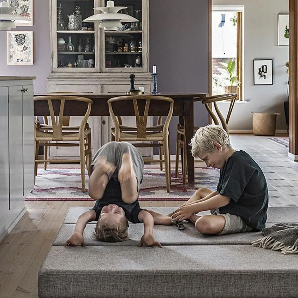 Die schönste Purzel- und Spielmatratze, Stuhl, Pouf oder Gästebett von . KK 3 fold ist eine dreischichtige Matratze, die auf viele kreative Arten verwendet werden kann. Sie ist perfekt für kleine Babys, um eine schöne Liegefläche zu bilden, und für die größeren Babys ist sie gut als Motivation zum Krabbeln, z.B. indem man sie zu kleinen Schritten faltet. Die größeren Kinder werden es als Platz für Brötchen und andere Purzelbäume lieben. KK 3 fold kann auch im Zimmer als Stuhl, Gästebett, Essplatz usw. verwendet werden. Ein sehr funktionelles Möbel mit schönem Design, das alle Familien besitzen sollten.