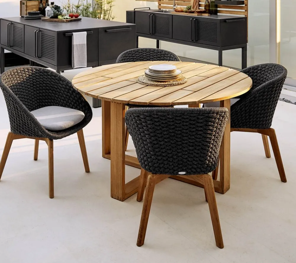 Der Endless-Esstisch von ist ein Tisch, der verschiedenen Bedürfnissen gerecht werden kann, da er sowohl als rechteckiger als auch als runder Tisch in verschiedenen Größen konzipiert ist. Der Endless-Tisch wird aus zertifiziertem Teakholz hergestellt, was für ein natürliches Aussehen und eine lange Lebensdauer des Tisches sorgt.