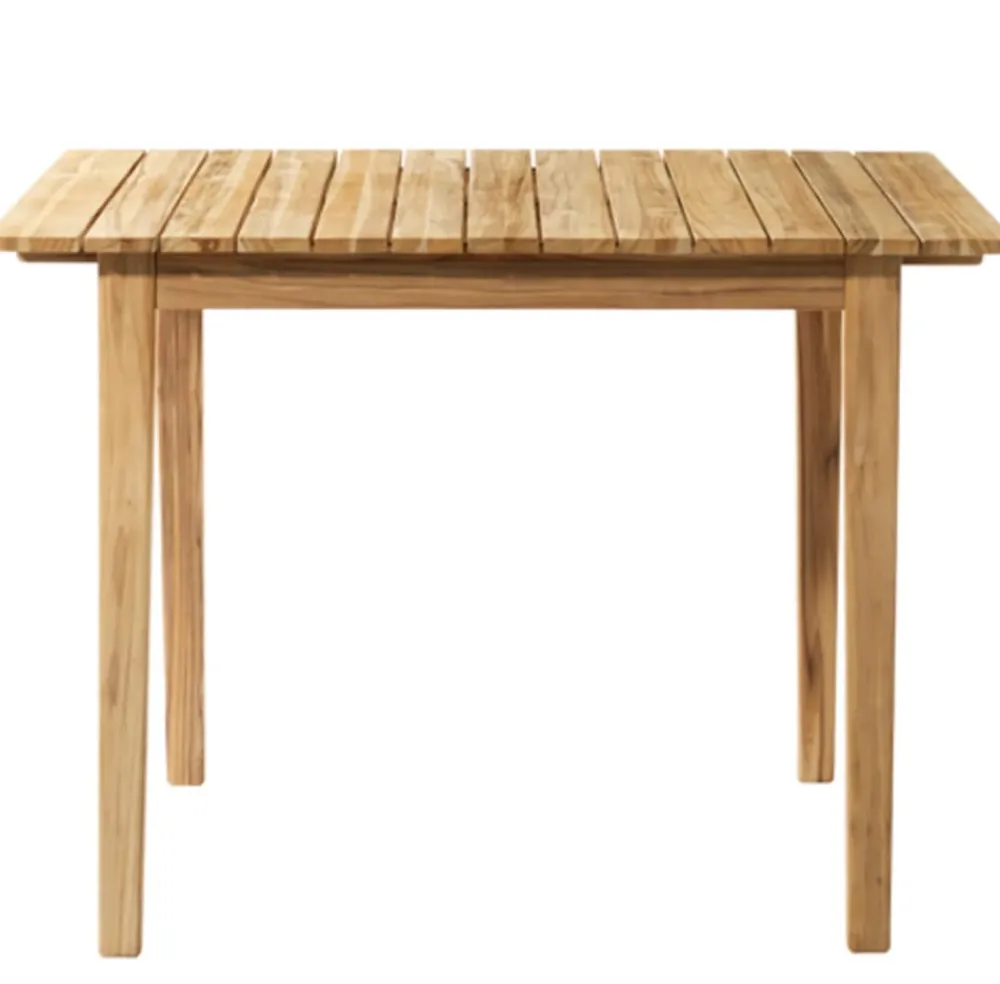 Der M3 Together Gartentisch von FDB Furniture, entworfen von Thomas E. Alken, verbindet klassische Handwerkskunst mit moderner Funktionalität. Das kompakte, fast quadratische Design macht den Tisch ideal für kleinere Essbereiche im Garten, auf dem Balkon oder der Terrasse. Aus natürlich geöltem Teakholz gefertigt, strahlt er Wärme und Eleganz aus, während die feinen handwerklichen Details von hoher Qualität zeugen. Der Tisch ist für den Außenbereich geeignet und wird im Laufe der Zeit eine schöne Patina bilden, die den natürlichen Charakter des Holzes unterstreicht. Er gehört zur Serie Sammen, in der zeitlose Ästhetik und solide Handwerkskunst Hand in Hand gehen.