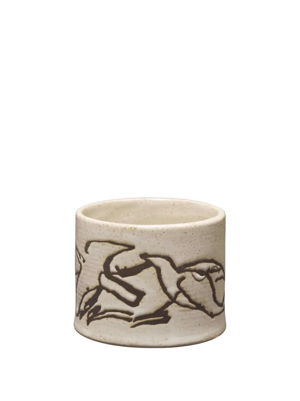 Die Vuelo Tasse von ist eine Hommage an Jørn Utzons poetische Vogelskizzen aus seiner Zeit bei Can Lis. Jede Tasse ist ein einzigartiges Kunstwerk und besteht aus glasierter Keramik mit handgedrehten Markierungen. Das elegante Vogelmotiv entsteht durch eine traditionelle Batiktechnik, bei der Wachs der Glasur widersteht und ein organisches und verführerisches Muster hinterlässt, das den handwerklichen Charakter der Tasse unterstreicht.