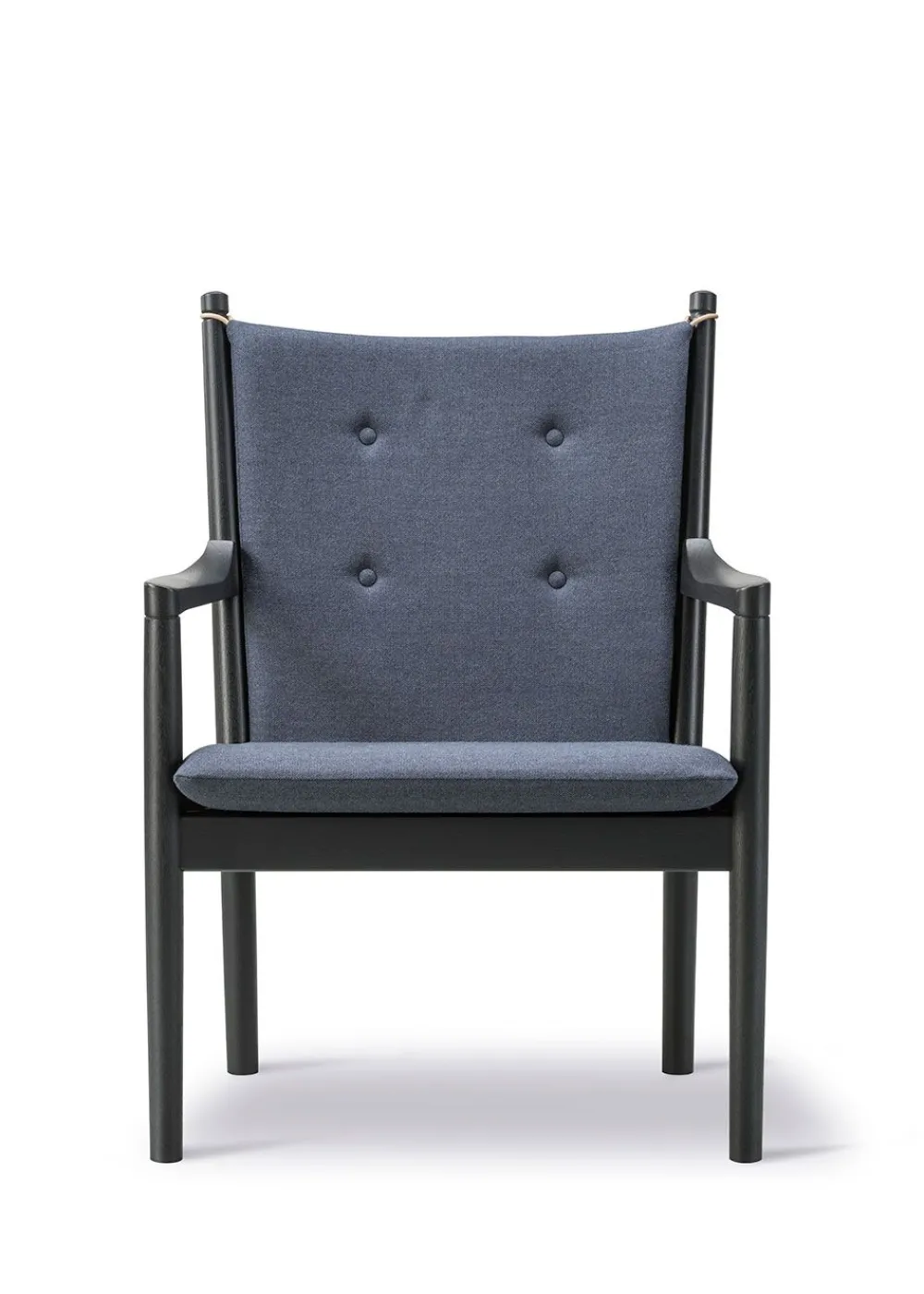Der Sessel hat nicht nur den Status des „Tremmesofaens“ erlangt, sondern auch den Weg auf den internationalen Markt gefunden. Der Stuhl imitiert einige Merkmale des Tremmesofaen“, ist aber vor allem dafür bekannt, dass er den skulpturalen Aspekt von Wegners Design repräsentiert. Der Sitz hat einen leichten Winkel, der den Komfort eines Sessels bietet und gleichzeitig ein formelles und schönes Profil aufweist. Der Komfort des Stuhls wurde mit einem traditionellen dänischen Design kombiniert, das, charakteristisch für das Design der Zeit, das Holz als tragendes Material des Möbels einbezog. Der optische Holzrahmen bildet den Rahmen für die eleganten Kissen, die durch Knöpfe ergänzt werden, die dem Kissen zusätzliches Volumen verleihen. Der Sessel ist in der ikonischen Textilie Cotil erhältlich, die mit ihren charakteristischen Karos und traditionellen Farben dazu beiträgt, den ursprünglichen Geist des Möbels zu bewahren, und die perfekt zum behandelten Holz passt.