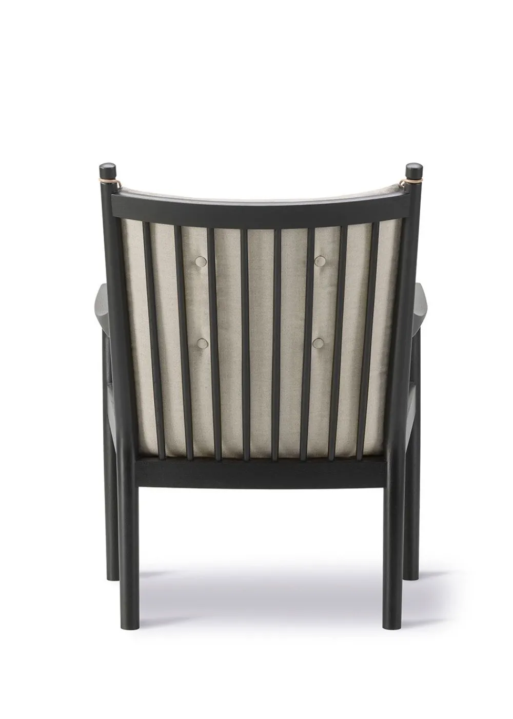 Der Sessel hat nicht nur den Status des „Tremmesofaens“ erlangt, sondern auch den Weg auf den internationalen Markt gefunden. Der Stuhl imitiert einige Merkmale des Tremmesofaen“, ist aber vor allem dafür bekannt, dass er den skulpturalen Aspekt von Wegners Design repräsentiert. Der Sitz hat einen leichten Winkel, der den Komfort eines Sessels bietet und gleichzeitig ein formelles und schönes Profil aufweist. Der Komfort des Stuhls wurde mit einem traditionellen dänischen Design kombiniert, das, charakteristisch für das Design der Zeit, das Holz als tragendes Material des Möbels einbezog. Der optische Holzrahmen bildet den Rahmen für die eleganten Kissen, die durch Knöpfe ergänzt werden, die dem Kissen zusätzliches Volumen verleihen. Der Sessel ist in der ikonischen Textilie Cotil erhältlich, die mit ihren charakteristischen Karos und traditionellen Farben dazu beiträgt, den ursprünglichen Geist des Möbels zu bewahren, und die perfekt zum behandelten Holz passt.