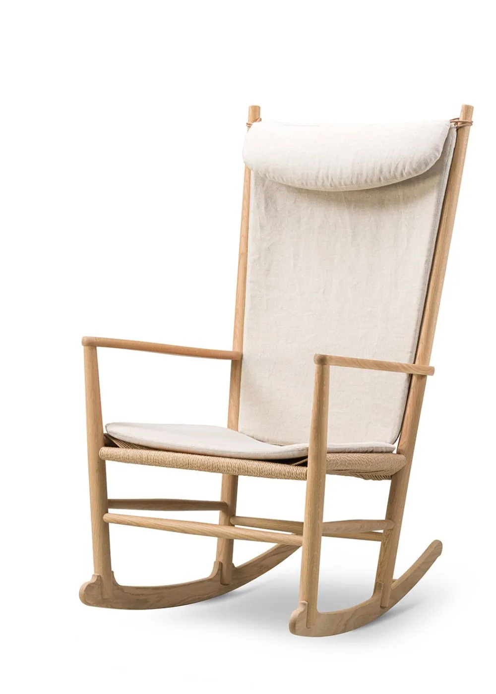 Der Schaukelstuhl J16″ ist eines der vielen Möbelstücke, die sich in Wegners Kollektion als echte Klassiker erweisen. Der Schaukelstuhl als Möbeltyp weckte schon früh Wegners Interesse, was einer der Gründe dafür war, dass der „J16“ einer der ersten Stühle war, die von Wegner in Produktion gingen. Das ikonische Möbelstück, das 1944 zum ersten Mal hergestellt wurde, feiert sein 75-jähriges Bestehen auf dem Markt, was mit einer Präsentation des Stuhls bei gefeiert wird. Bis dahin wurde der Schaukelstuhl in der Produktion angepasst, um das Herstellungsverfahren so weit wie möglich zu vereinfachen, ohne die exklusive Qualität zu beeinträchtigen. Und genau diese Qualität gewährleistet mit seiner exquisiten Tischlerei, die die Originalität der Möbel einschließt. In den 1950er Jahren war dunkles Holz für dänische Möbel besonders charakteristisch, was sich auch in der Neueinführung widerspiegelt, aber passend zur neuen Zeit ist der Schaukelstuhl jetzt auch in heller Eiche und warmem Nussbaum erhältlich.
