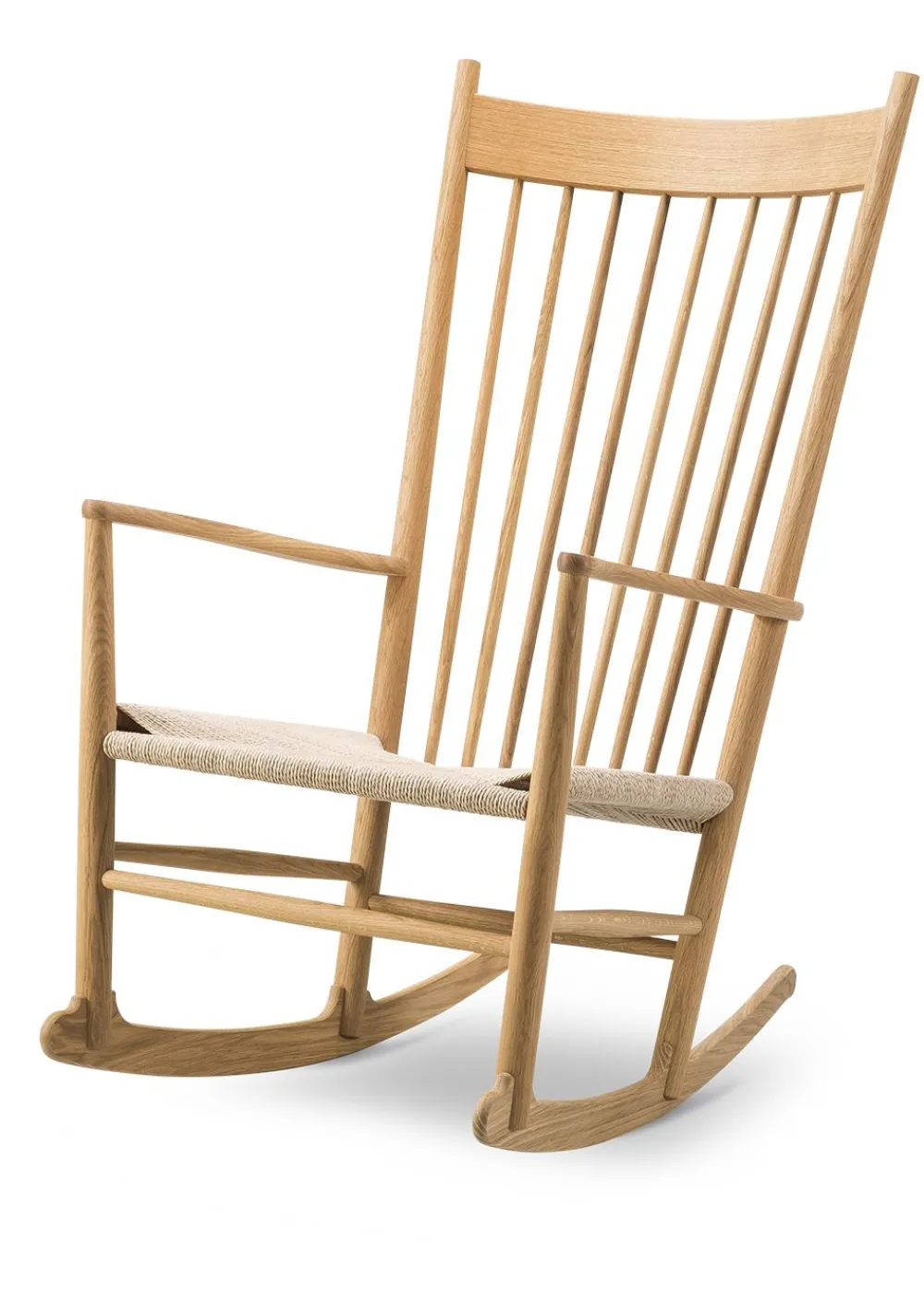 Der Schaukelstuhl J16″ ist eines der vielen Möbelstücke, die sich in Wegners Kollektion als echte Klassiker erweisen. Der Schaukelstuhl als Möbeltyp weckte schon früh Wegners Interesse, was einer der Gründe dafür war, dass der „J16“ einer der ersten Stühle war, die von Wegner in Produktion gingen. Das ikonische Möbelstück, das 1944 zum ersten Mal hergestellt wurde, feiert sein 75-jähriges Bestehen auf dem Markt, was mit einer Präsentation des Stuhls bei gefeiert wird. Bis dahin wurde der Schaukelstuhl in der Produktion angepasst, um das Herstellungsverfahren so weit wie möglich zu vereinfachen, ohne die exklusive Qualität zu beeinträchtigen. Und genau diese Qualität gewährleistet mit seiner exquisiten Tischlerei, die die Originalität der Möbel einschließt. In den 1950er Jahren war dunkles Holz für dänische Möbel besonders charakteristisch, was sich auch in der Neueinführung widerspiegelt, aber passend zur neuen Zeit ist der Schaukelstuhl jetzt auch in heller Eiche und warmem Nussbaum erhältlich.