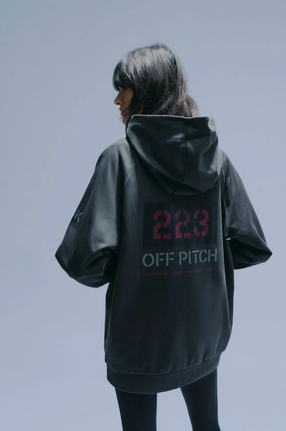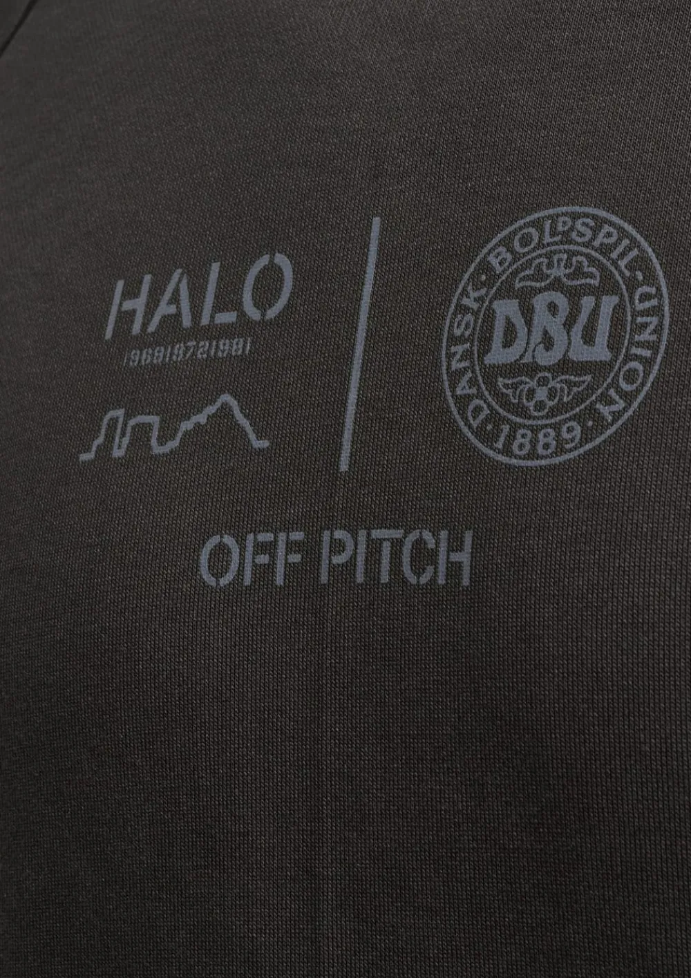 Das x DBU Sweatshirt ist aus Bio-Baumwolle gefertigt und hat eine übergroße Passform. Das Modell hat ein DBU- und HALO-Logo auf der Vorderseite und einen klassischen grafischen HALO-Print auf der Rückseite. Die Passform ist oversized und das Modell ist unisex.