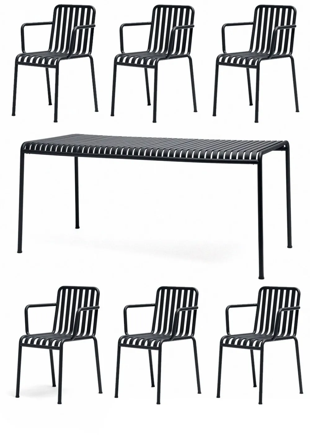 1 Palissade Tisch (L170 x B90 x H75 cm) und 6 Palissade Sessel (B51 x T56 x H80 cm)