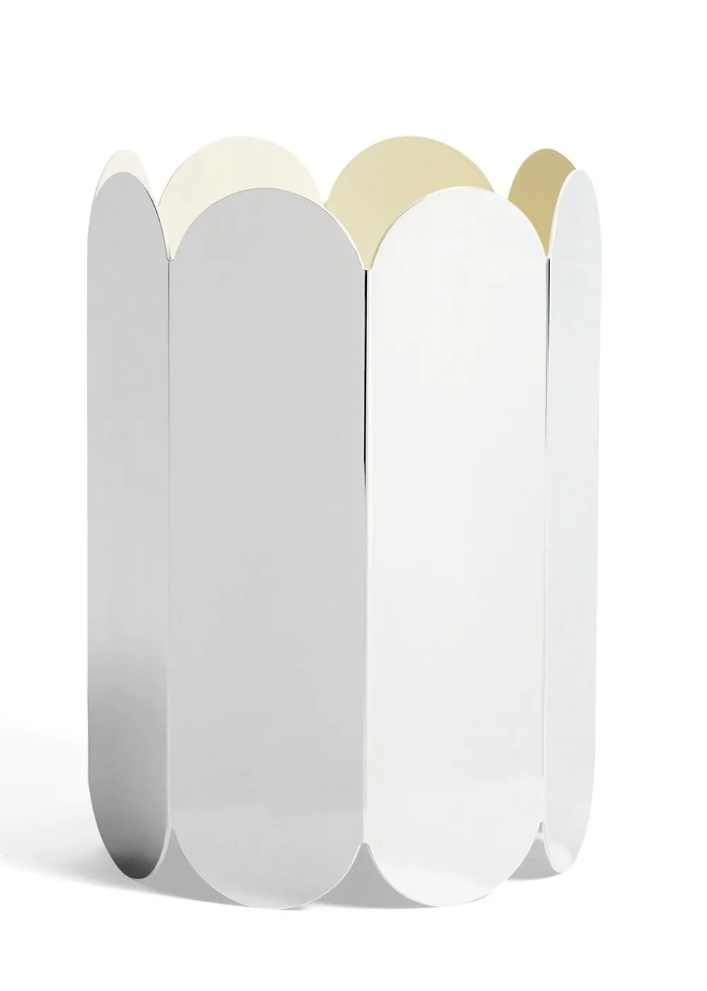 Die Kollektion Arcs wurde vom belgischen Designerduo Muller Van Severen entworfen, das für seine skulpturalen und farbenfrohen Entwürfe bekannt ist, die oft von architektonischen Elementen inspiriert sind. Die Serie zeichnet sich durch ihre einzigartige Komposition aus säulenförmigen Ovalen aus, die vertikal zu einer geometrischen Skulptur zusammengesetzt sind. Diese Figur findet sich in Form von Vasen, Kerzenhaltern und Lampen wieder, die zusammen einen schönen roten Faden in der Wohnung bilden können.