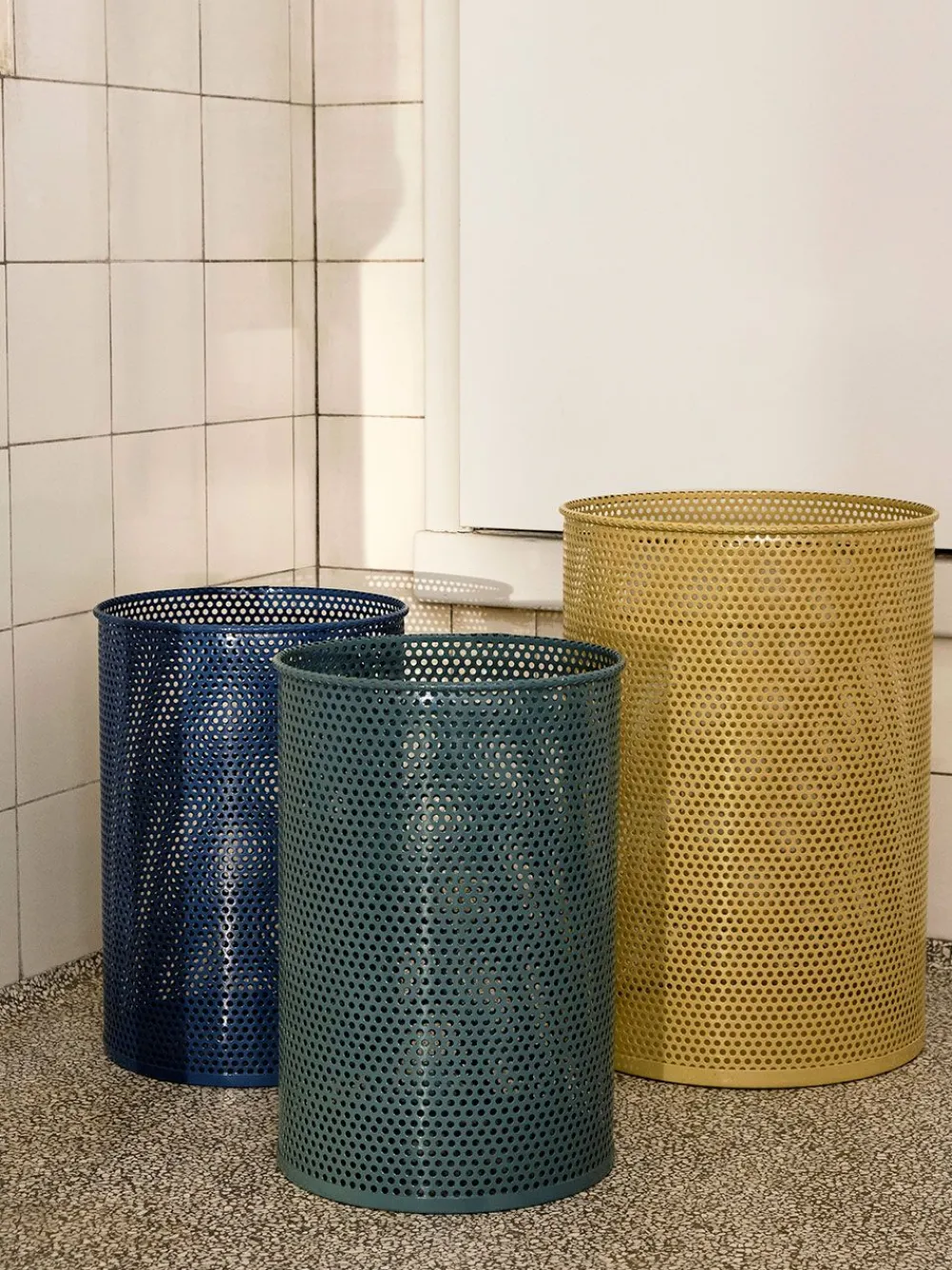 Mit seinen schönen Farben ist dieser multifunktionale Mülleimer die perfekte Ergänzung für Ihr Zuhause, egal ob Sie ihn als Mülleimer, zur Aufbewahrung von Decken oder als Wäschekorb verwenden. Der Mülleimer ist aus robustem, perforiertem Stahl gefertigt und somit perfekt für den täglichen Gebrauch geeignet.