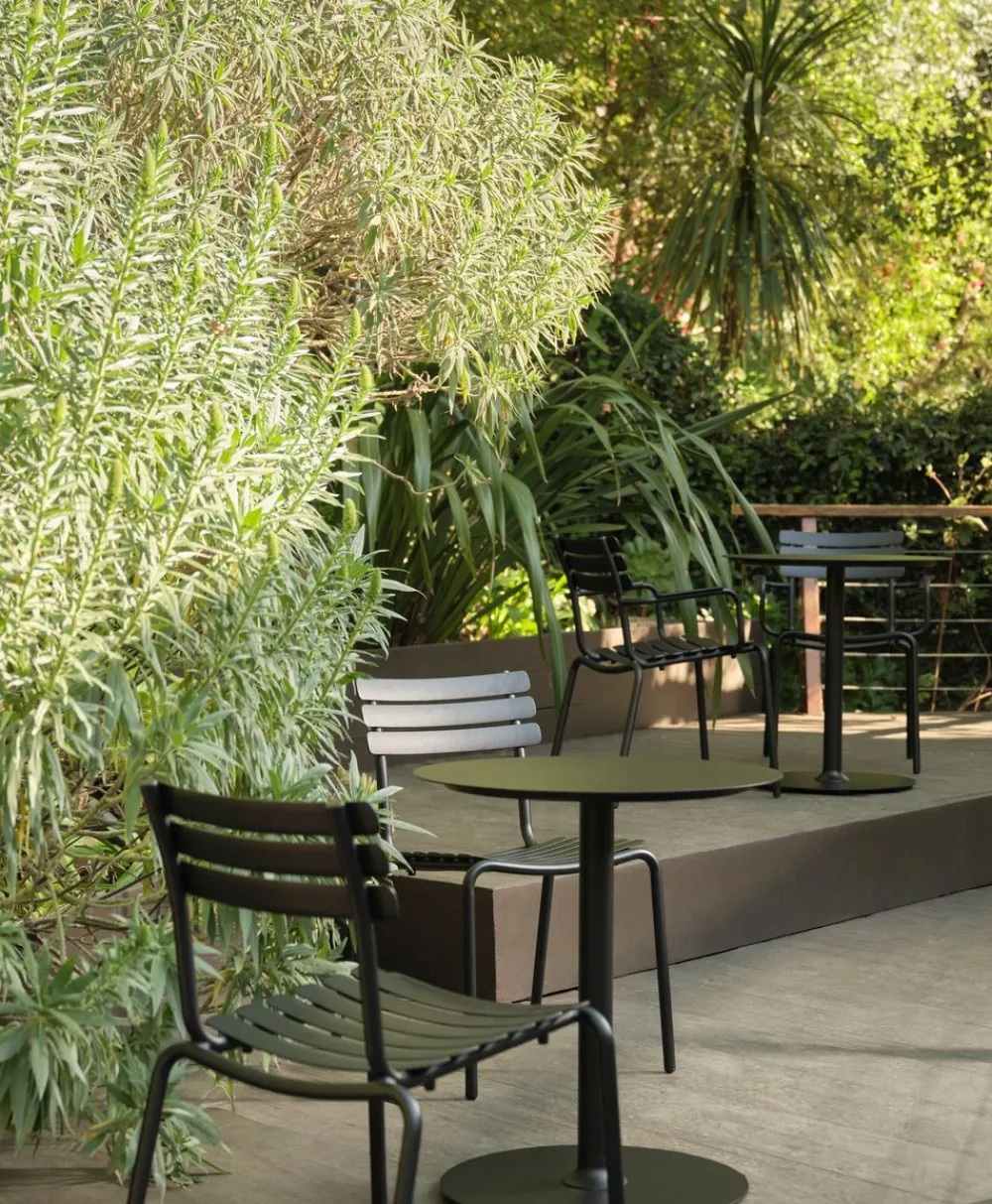Durch sein minimalistisches Design eignet sich der Café Table sowohl für private Balkone als auch für öffentliche Cafébereiche. Die robuste Konstruktion sorgt für Stabilität, während das kompakte Format perfekt in kleinere Räume passt. Kombinieren Sie den Tisch mit den Outdoor-Stühlen von für einen einheitlichen Look oder schaffen Sie eine gemütliche Sitzecke mit einem Mix aus Materialien und Texturen. Erhältlich in mehreren Varianten, darunter auch ein runder Stehtisch, der zusätzliche Flexibilität bei der Inneneinrichtung bietet.