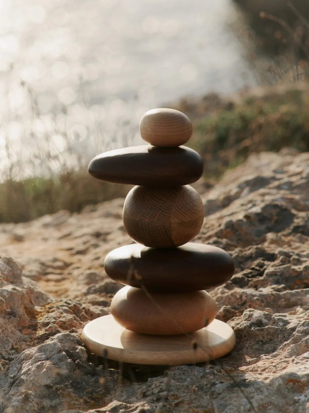 Die Pebble Stacking Blocks von verbinden Spiel und Ästhetik mit der Inspiration durch die Formen der Natur. Die weichen, organischen Blöcke aus FSC®-zertifiziertem Eschen-, Buchen- und Gummibaumholz liegen gut in kleinen Händen und fördern das Gleichgewicht und den kreativen Ausdruck. Die seidenweiche, kindersichere Oberfläche macht es zu einem Vergnügen, sie zu berühren, während die natürlichen, erdigen Farben jedem Raum Wärme verleihen.
