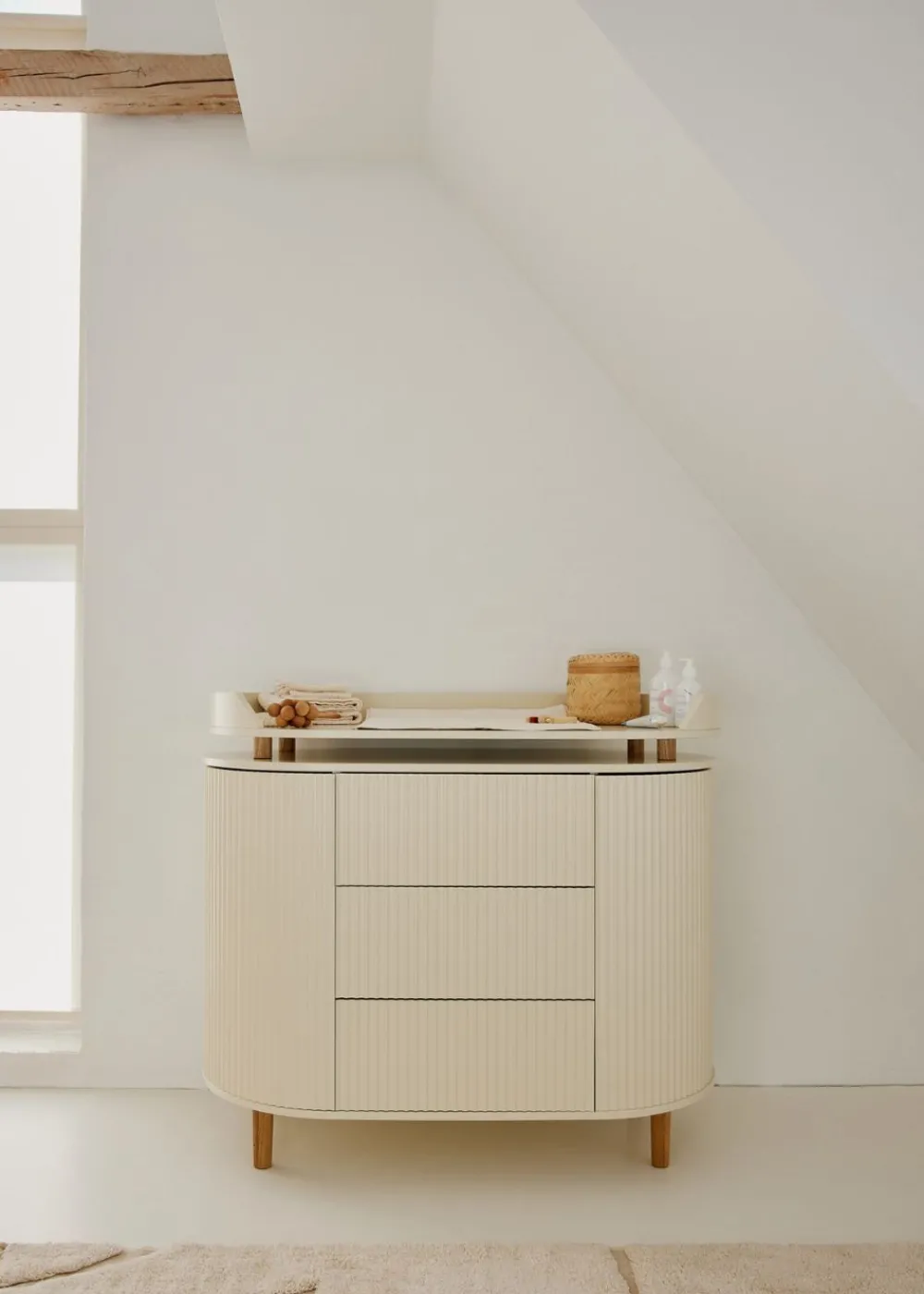 DieWickelkommode KAI ist Teil der KAI-Kollektion von KAS Copenhagen. Die KAI-Kollektion ist von den prächtigen dorischen Säulen des antiken Griechenlands inspiriert. Die Kollektion bietet klassische Designs mit viel Funktionalität und eleganten Oberflächen.