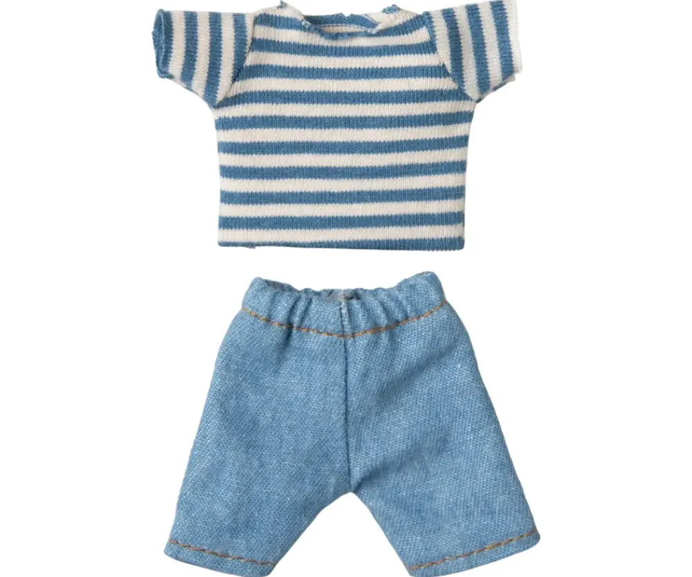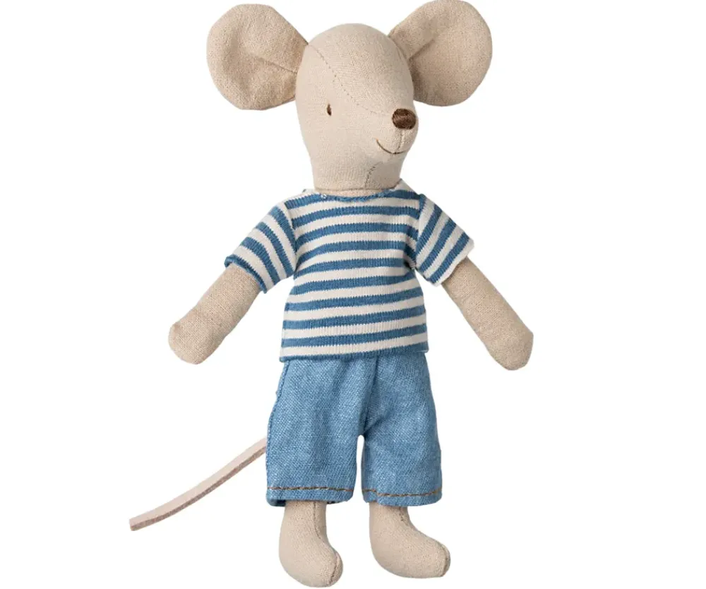LouiMax von ist ein abenteuerlustiger kleiner Kerl, immer bereit für neue Erfahrungen. Mit seinem weichen Körper, den feinen Details und seinem charmanten Ausdruck wird er schnell zu einem treuen Freund. Er trägt einen klassisch blau gestreiften Pullover und lässige Jeans-Shorts, die ihm einen schönen, zeitlosen Look verleihen.