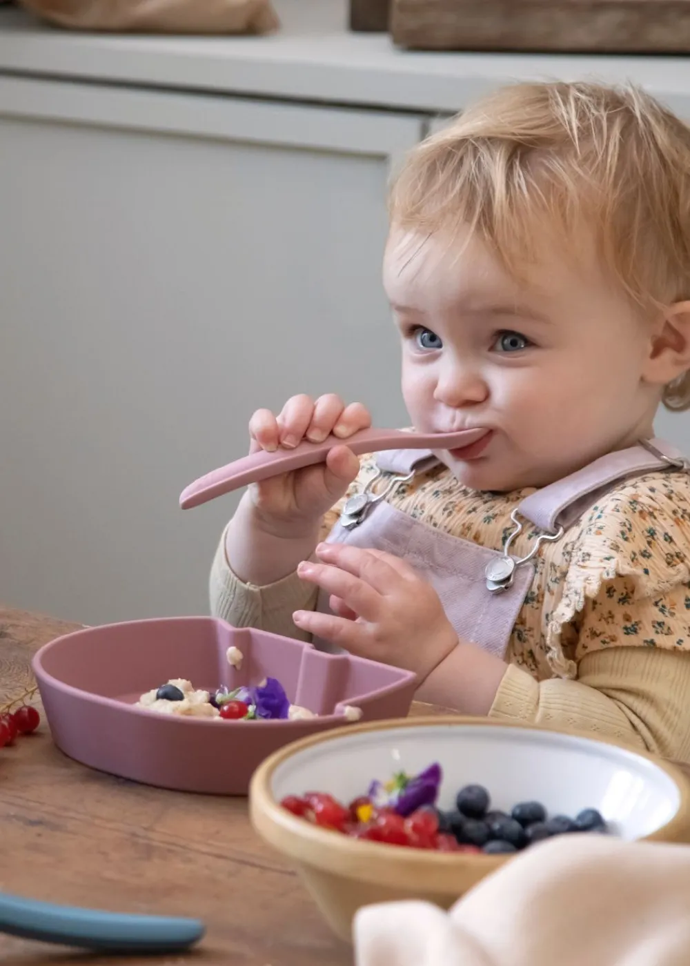 Das Silikonlöffel-Set von ist ein niedliches und leichtes Löffelset für Kinder. Das Set besteht aus zwei Löffeln in schönen Farben und funktionellen Formen. Das Silikonlöffel-Set besteht zu 100 % aus Silikon, wodurch es angenehm zu halten und zu lutschen ist. Servieren Sie dem Kleinen Brei, Joghurt und Ähnliches und beobachten Sie, wie er leicht hinunterrutscht.