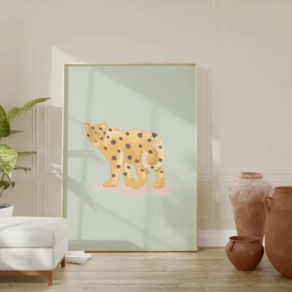 Das Poster „Green Cheetah“ von hat einen grünen Hintergrund mit einem majestätischen Geparden darauf. Der süße Ausdruck des Posters und die weichen Pinselstriche bringen Gemütlichkeit in das Kinderzimmer. Kombinieren Sie es mit den anderen Kinderpostern von und gestalten Sie eine einzigartige kleine Bilderwand, an der sich Ihr Kind erfreuen kann.