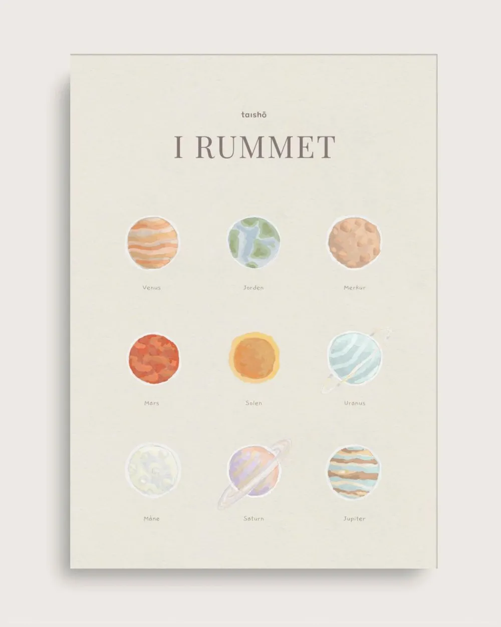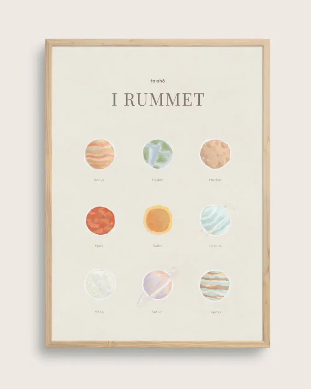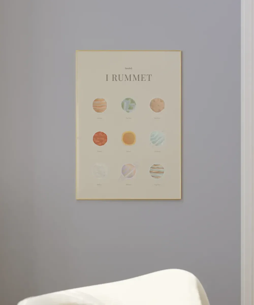 Auf dem Kinderposter „Im Weltraum“ sind 9 verschiedene Planeten abgebildet, unter denen die Namen stehen. Die einzigartigen Designs und die schönen Farben der Planeten machen das Poster zu einem dekorativen Hingucker an den Wänden des Kinderzimmers.