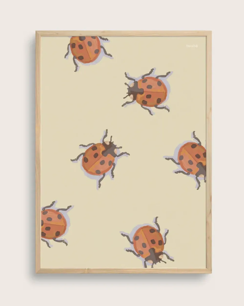 Das Poster ‚Marolle‘ von ist ein nettes Kinderposter mit niedlichen Marienkäfern darauf. Die Marienkäfer sind in Rot-/Orangetönen mit violetten Schatten auf einem weichen hellgelben Hintergrund gemalt. Das Poster regt zum Dialog, zum Spielen und zum Lernen an.