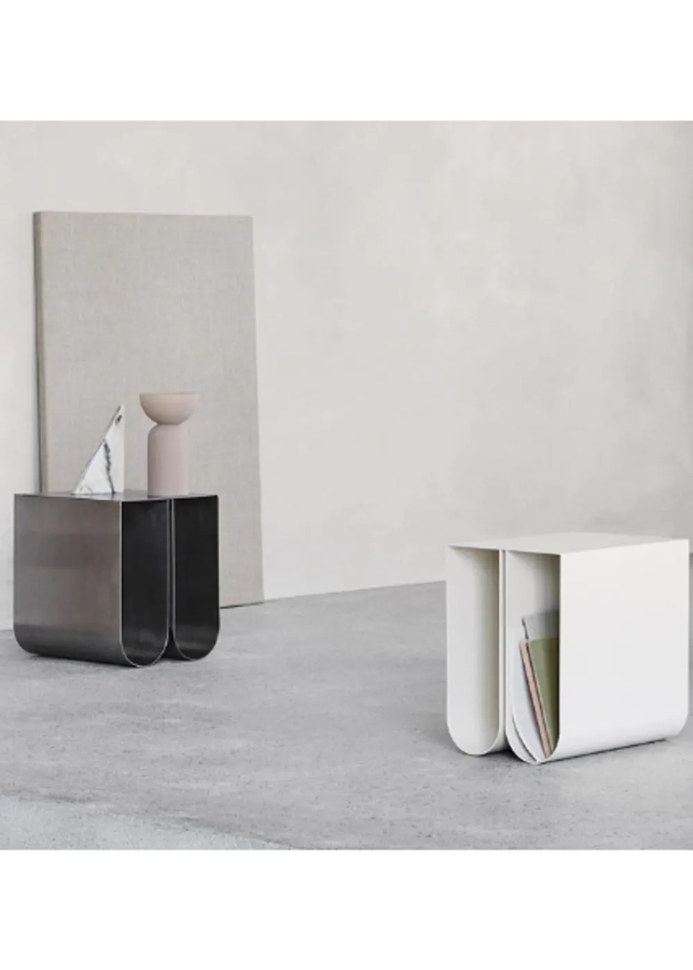 Schöne „Curved Side Table“, die ein schönes Möbelstück, um Ihre Zeitschriften, Zeitungen oder Zeitschriften zu speichern ist. Der Beistelltisch ist aus schwarz/beigem pulverbeschichtetem Stahl gefertigt, der dem Raum, in dem Sie den Beistelltisch aufstellen möchten, einen einzigartigen Look verleiht. Sie können ihn entweder in Ihr Wohnzimmer neben Ihren Lieblingssessel stellen, oder Sie können den Tisch als schönen Nachttisch verwenden, auf dem Sie Ihre wichtigsten Dinge aufbewahren und dekorieren können.