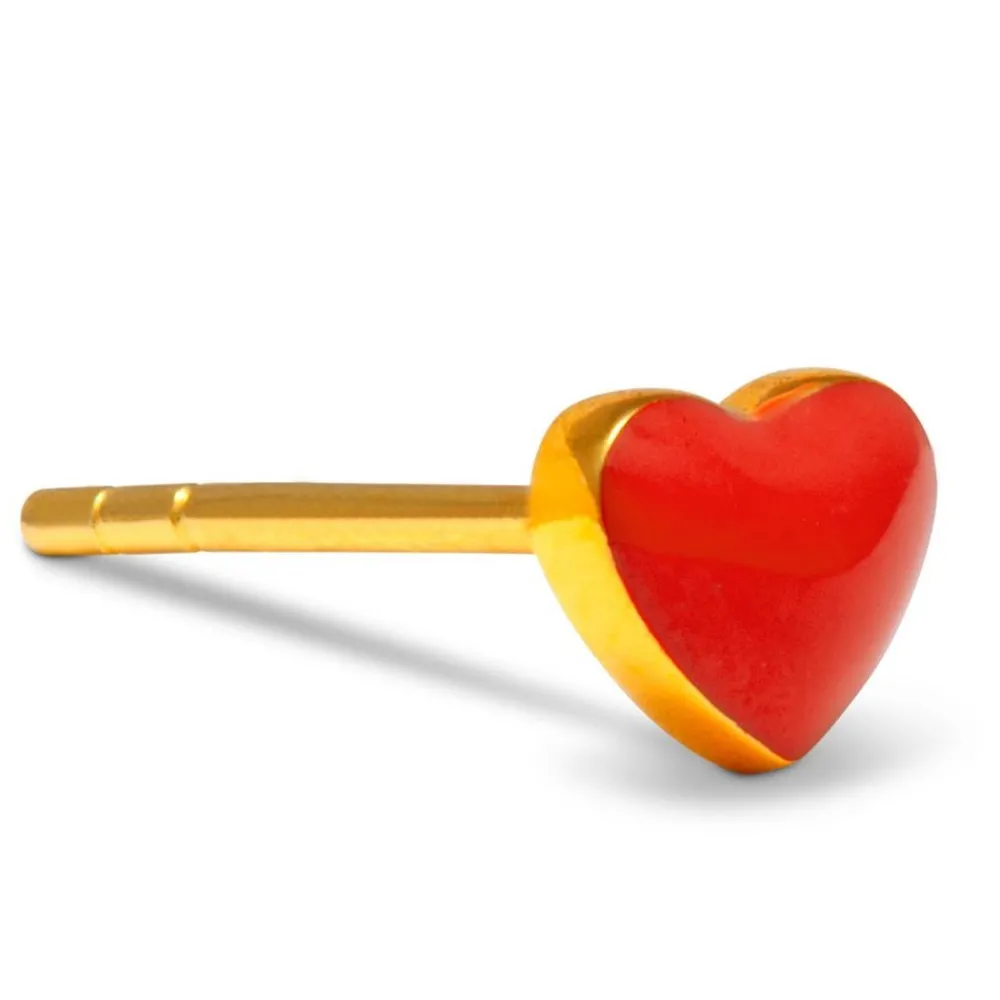 Liebliches kleines Herzchen von der LULU Kopenhagen. Das LOVE U-Ohrstück hat einen voluminösen Ausdruck in einem kleinen Design. Die Herzen mit farbiger Emaille sind auf der Oberfläche abgerundet, während die Herzen in Gold und Silber eine glatte Oberfläche haben.