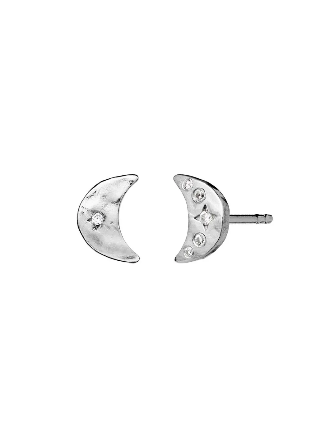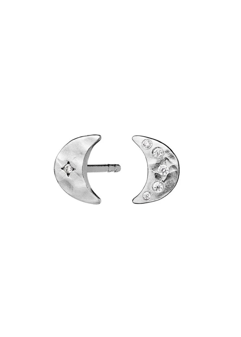 Ein Paar kleine Mondnieten mit Zirkonen, die wie Sterne leuchten. In der griechischen Mythologie wurde Aega als eine Nymphe beschrieben, die sich später in eine Sternenkonstellation am unendlichen Himmel verwandelte.
