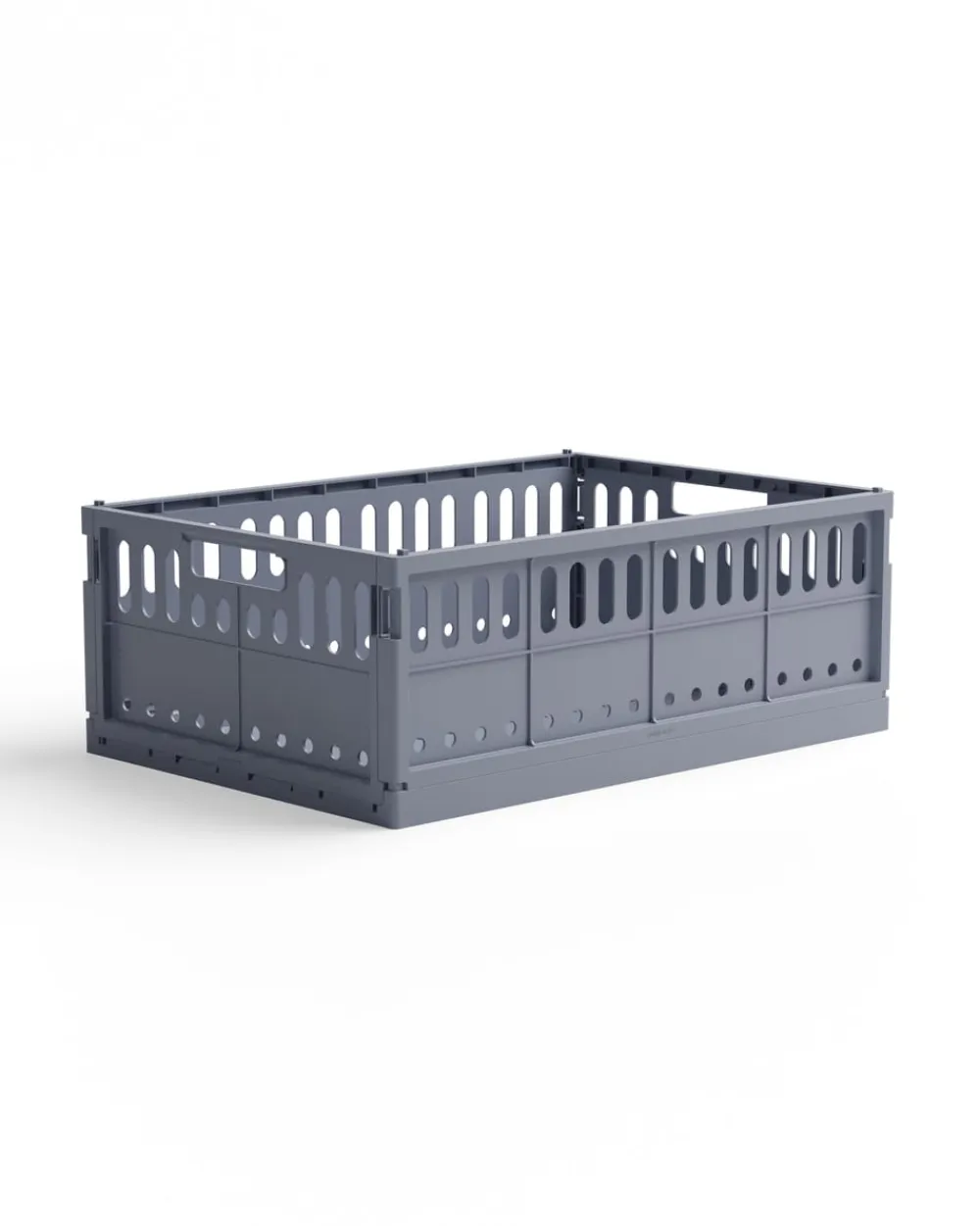 ist eine Reihe von umweltfreundlichen Faltkisten mit einem einzigartigen Design. wird zu 100 % aus recycelten Kunststoffabfällen hergestellt und in Europa produziert und bietet verantwortliche Aufbewahrungslösungen. Diese Kisten sind stapelbar, in drei verschiedenen Größen erhältlich und in einer breiten Palette von leuchtenden Farben verfügbar. Nachhaltig, stapelbar, stilvoll – definiert die Aufbewahrung mit einem grünen Touch neu.