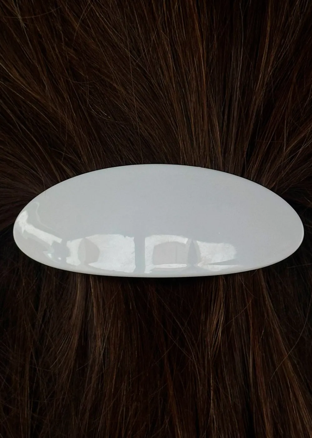 Die Mie Hair Barrette von ist eine elegante Haarspange aus glattem Acetat mit einem minimalistischen und zeitlosen Design. Mit einer Größe von 9 x 4 cm ist sie ideal, um das Haar mit raffinierter Leichtigkeit in Position zu halten, während die vergoldete Stahlspange für einen festen Halt sorgt, ohne das Haar abzunutzen.