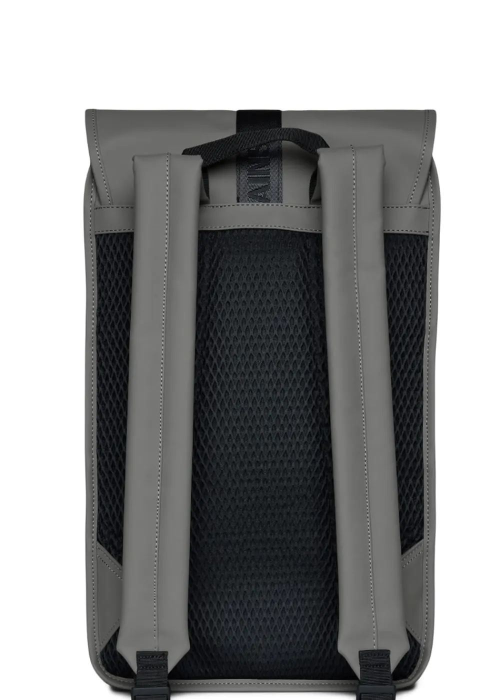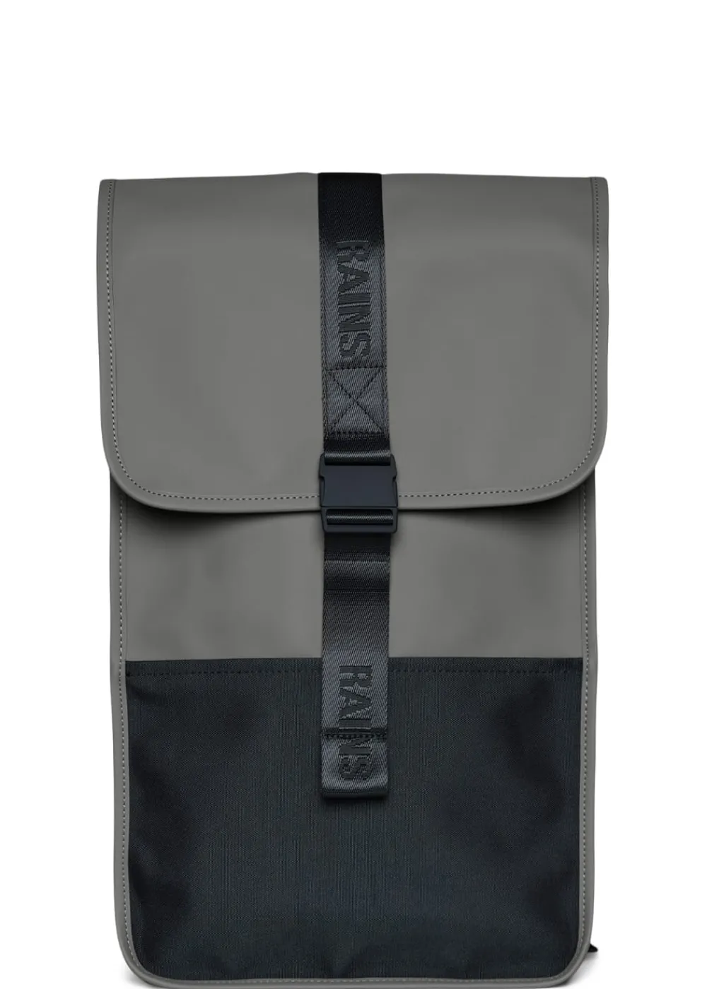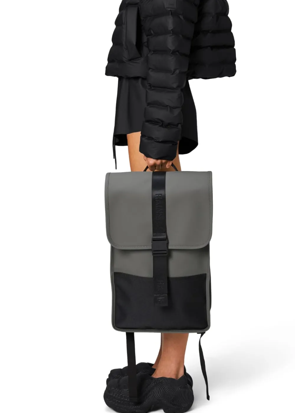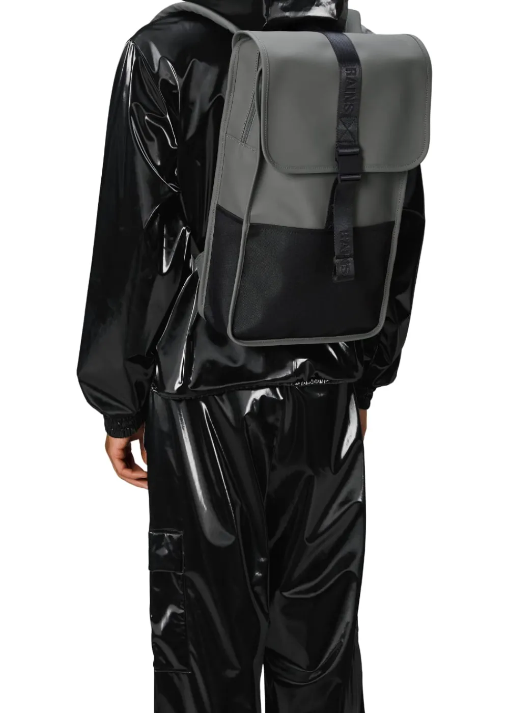 Der Trail Backpack W3 ist von Rains‘ klassischem Rucksack inspiriert. Die Tasche ist einfach und zeitlos. Dies ist eine echte RAINS Tasche, die sich durch die große Klappe und einen verstellbaren Gurt mit gummierter Schnalle an der Vorderseite auszeichnet. Der Rucksack hat eine Innentasche mit Platz für einen Laptop, ein großes Hauptfach und ein gepolstertes Mesh-Rückenteil, das ihn atmungsaktiv macht. Die Tasche ist aus dem für RAINS typischen PU-Material gefertigt.
