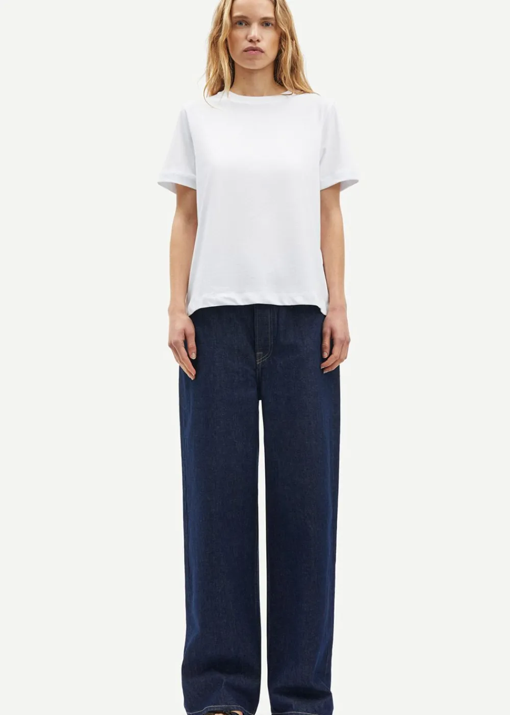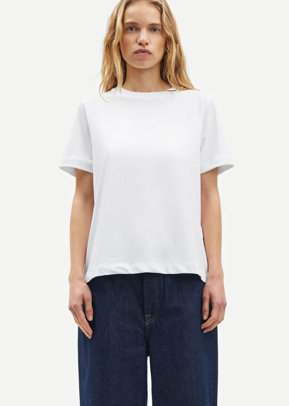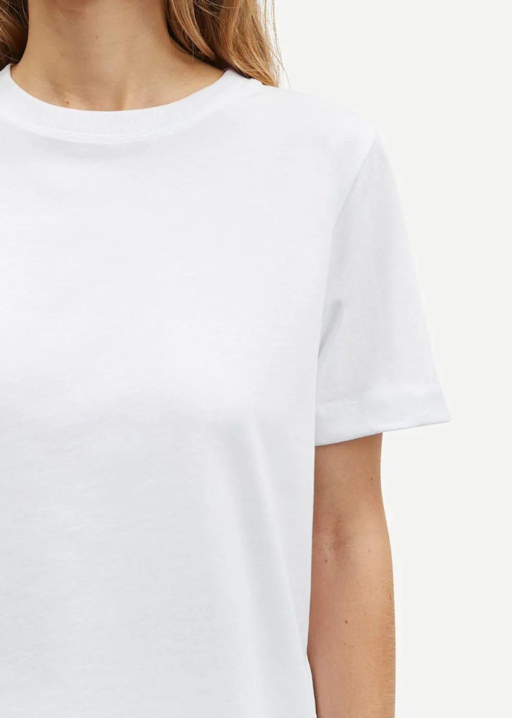 Das Camino SS T-Shirt von Samsøe Samsøe ist ein unverzichtbares Basic aus weicher, GOTS-zertifizierter Bio-Baumwolle. Es hat einen klassischen Rundhalsausschnitt, kurze Ärmel und eine leicht lockere Passform für einen entspannten und dennoch stilvollen Look.
