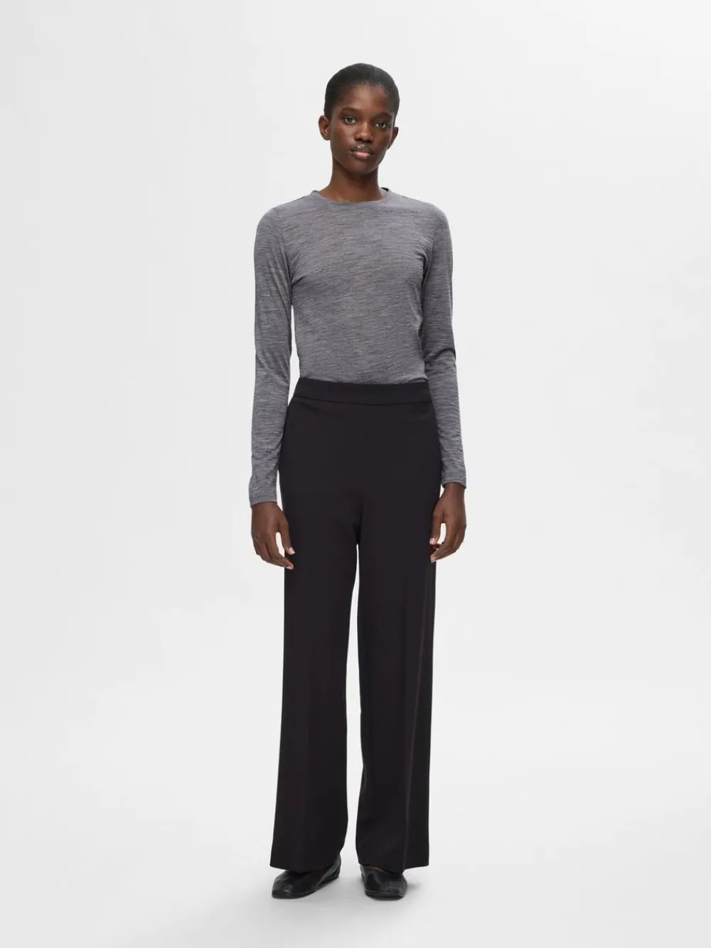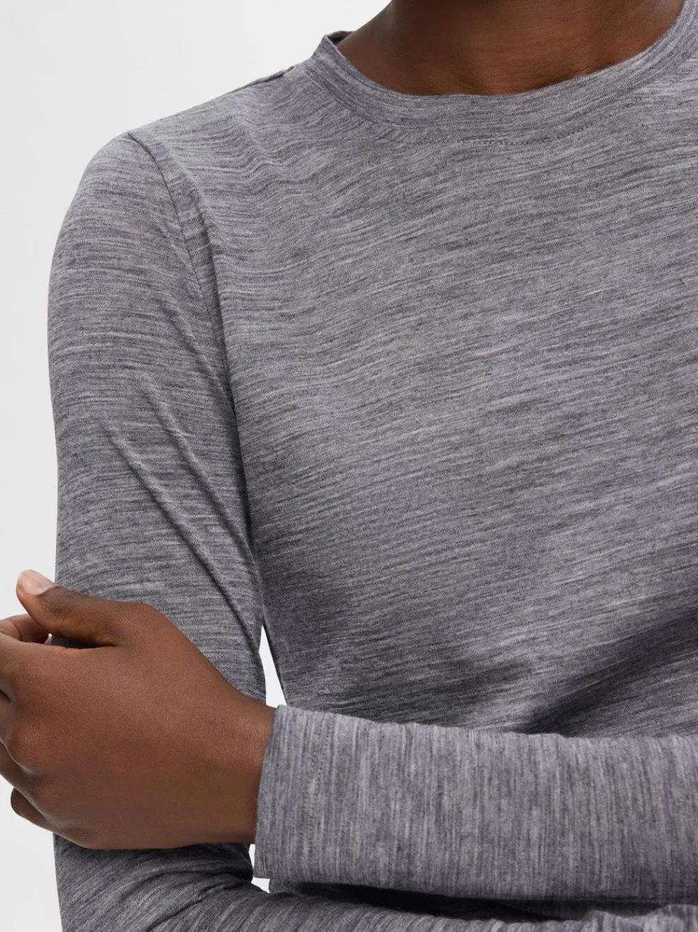 Hübsche, taillierte Bluse aus 100% Wolle von . Das Modell hat lange schmale Ärmel, einen Rundhalsausschnitt und eine reguläre Länge. Die perfekte Basic-Bluse für Ihren Kleiderschrank.