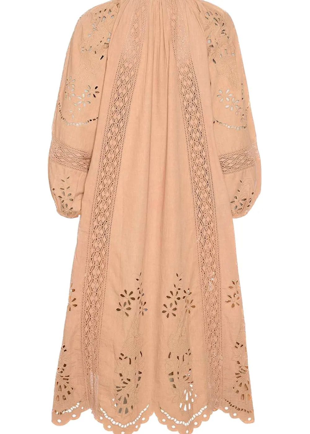 Das Mila Dress von ist ein luftiges Kleid aus verantwortungsvoll angebauter Bio-Baumwolle mit schönen Broderie-Anglaise-Ausschnitten und dekorativen Spitzendetails. Die geräumige Passform und der leichte Faltenwurf sorgen für einen femininen Look, während der V-Ausschnitt und die voluminösen Ärmel für einen raffinierten Touch sorgen.