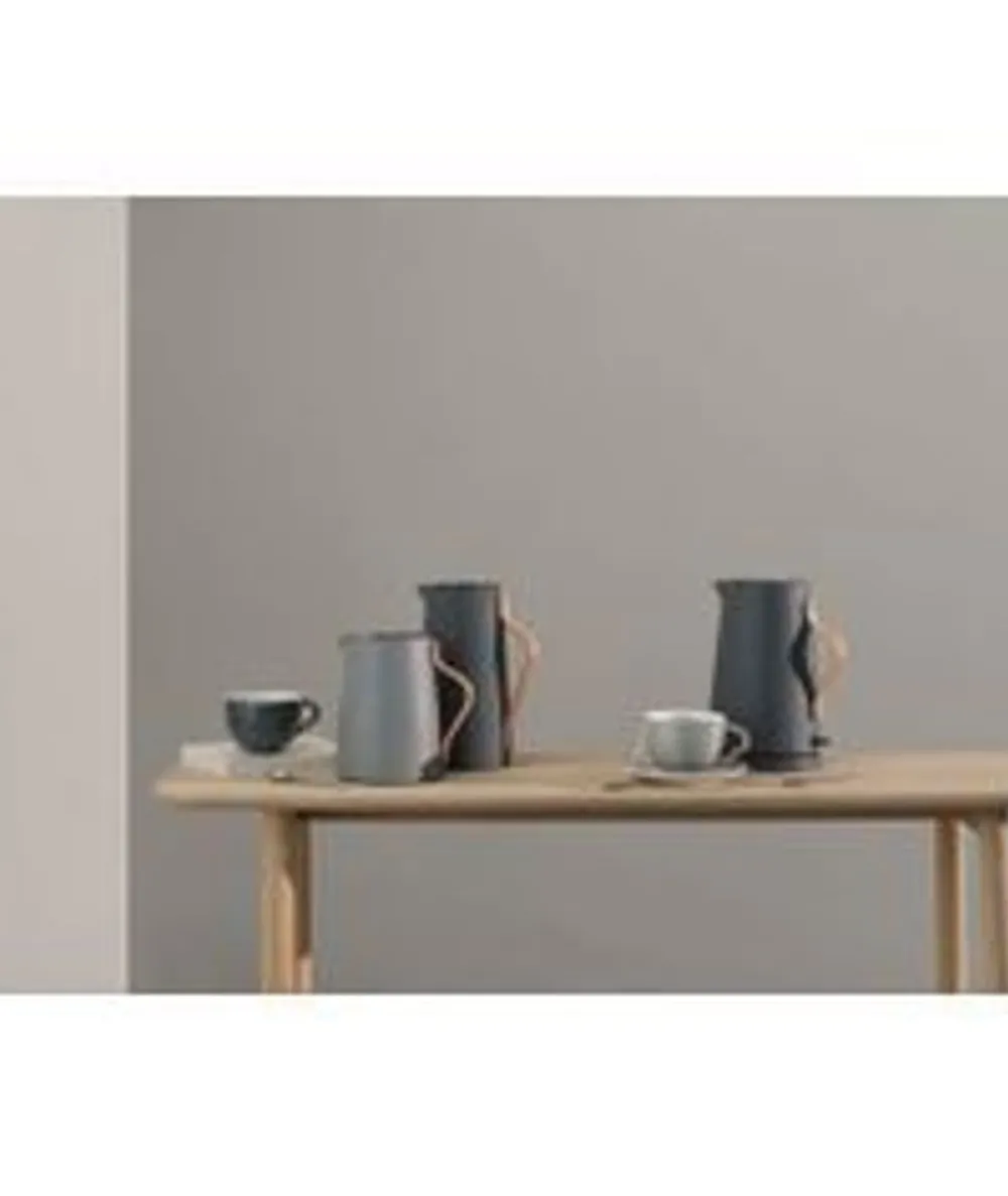 Emma Thermoskanne von Entworfen von dem dänischen Designerduo HolmbäckNordenttoft, das sich an der dänischen Designschule kennengelernt hat, an der beide ihren Abschluss gemacht haben, und das nun ein gemeinsames Designstudio betreibt. Die Thermoskanne ist eine Kombination aus stilvollem Design und praktischer Möglichkeit, Kaffee oder andere Heißgetränke auf Kaffeetellern zu Hause zu servieren. Zusammen mit einer schönen und praktischen Thermoskanne gibt es eine Auswahl an Farben, so dass Sie genau diejenige bekommen, die zu Ihrem Stil oder Ihrem Geschirr passt.