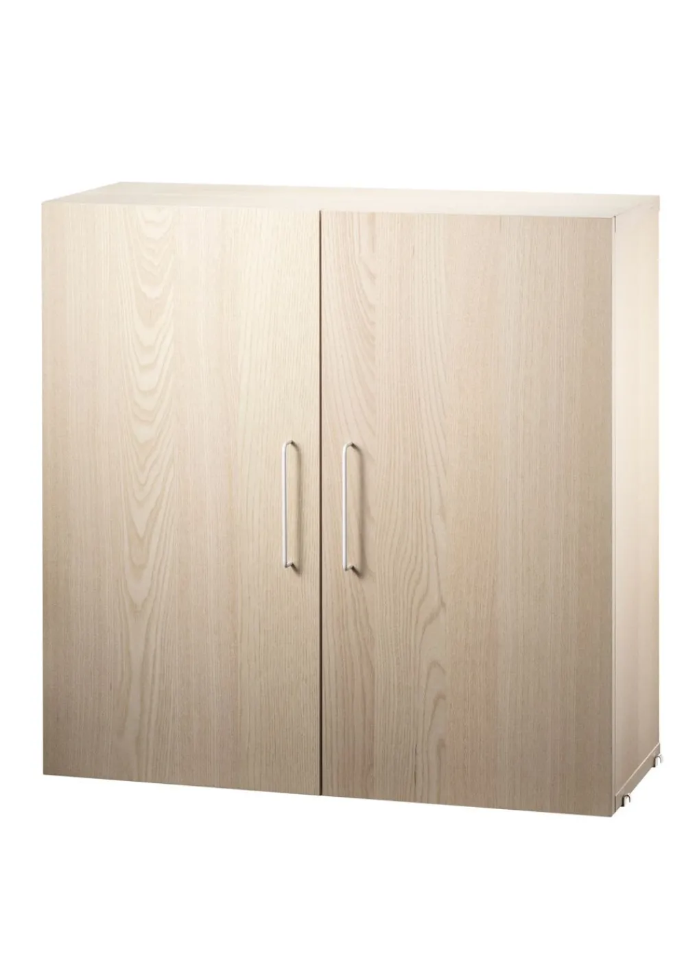Der Aktenschrank ist Teil des String-Regalsystems, bei dem Funktionalität und Kundenanpassung im Vordergrund stehen. Das Regalsystem bietet unendliche Möglichkeiten für die Aufbewahrung und Kreativität, und mit einer großen Auswahl an Varianten, Farben und Materialien ist das String-Regalsystem der perfekte Weg, um Ihr eigenes Design zu kreieren. Die Serie besteht aus Boden-, Wand- und Flex-Paneelen, die eine Basis für Regale und Ablagen bilden. Es können Regale, Schränke, Bordüren, Zeitschriftenhalter und verschiedene Gadgets hinzugefügt werden. Das flexible System eignet sich perfekt für das moderne Zuhause, in dem einige wenige Elemente die Grundlage für die Inneneinrichtung des gesamten Hauses bilden können und sich leicht an den jeweiligen Raum anpassen lassen, egal für welchen Zweck.