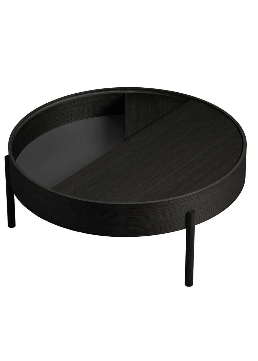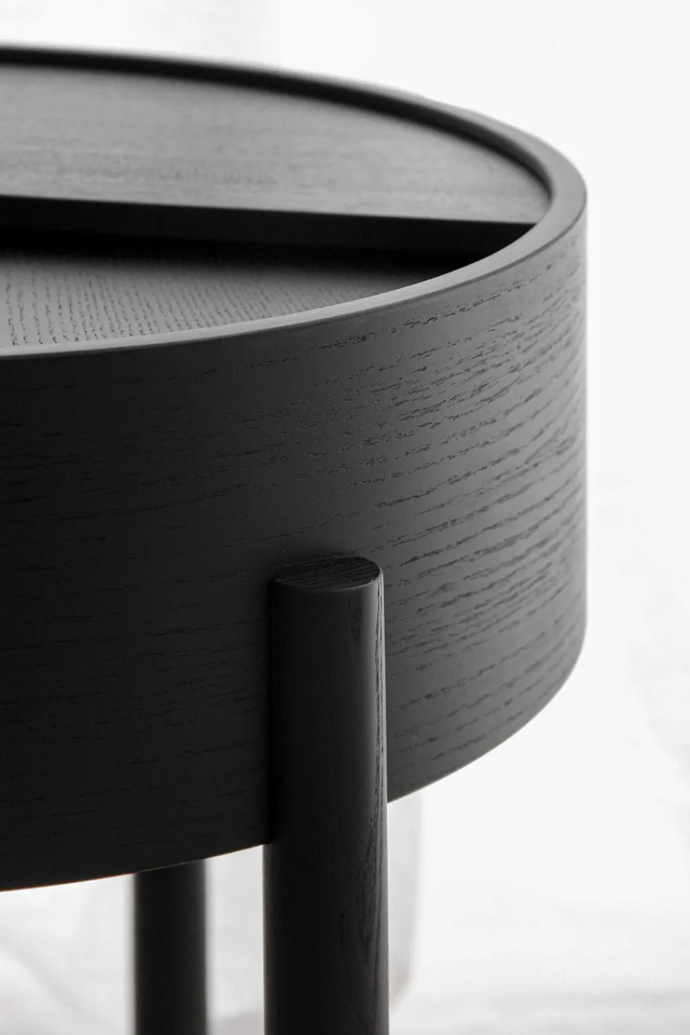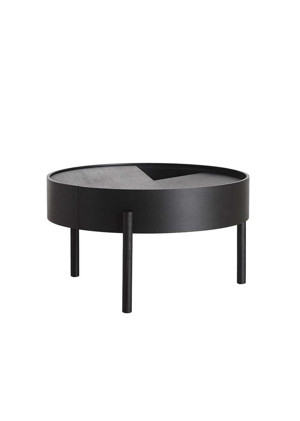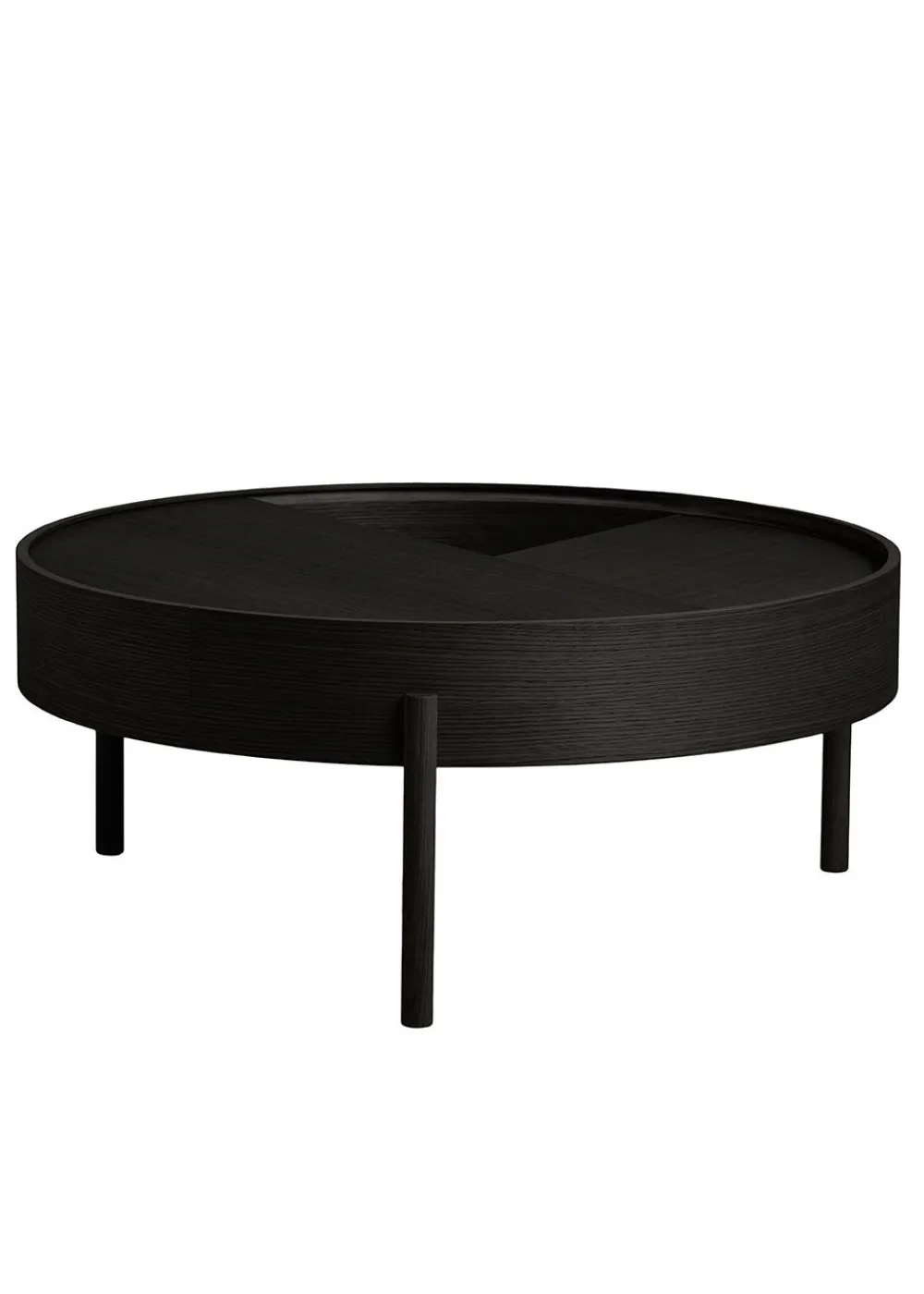 ARC Beistelltisch und Couchtisch wurden von Julie Begtrup und Ditte Vad entworfen. Der Name leitet sich von dem mathematischen Konzept einer glatten Kurve ab, die zwei Punkte in einem Kreis verbindet. Die Tische verfügen über funktionale Merkmale, die den Benutzer zur Nutzung anregen. Sie können den oberen Tisch leicht mit einem Finger öffnen. Die Tischplatte kann offen gelassen werden, um Ihre Lieblingssachen zu präsentieren, aber Sie können den Deckel auch geschlossen lassen, um die Dinge darin zu verstecken.